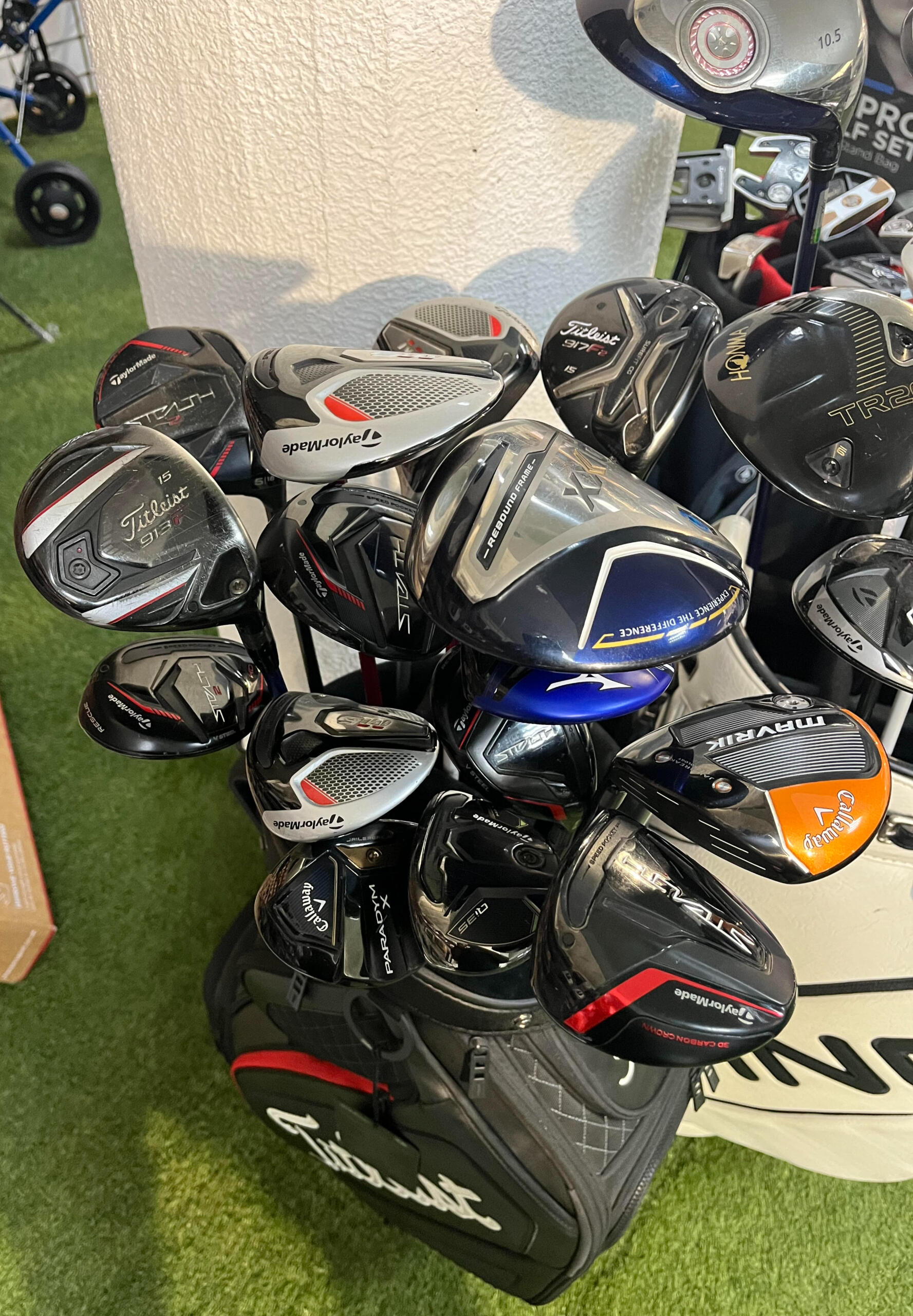 I went to Nevada Bob's Golf in Estoril and I highly recommend this store. It's huge, with everything from budget to pro-level equipment in stock. Their used club selection is fantastic! I found a driver that was half the cost of the prices I see online. Make sure to only visit the Estoril location, as the other stores you might see on Google Maps are mini-kiosks at local golf courses. (Yes, this is an actual picture of one of barrels of used golf clubs at Nevada Bobs.)In terms of Nevada Bob's online experience, there is quite a bit to be desired. The website is essentially a collection of sales photos and descriptions of items, leaving users to wonder what products are actually in stock and why the company seems to have invested so much effort in posting this much product information online without providing the capability to actually make purchases online. But, their in-store experience makes up for all of the shortcomings of the website.